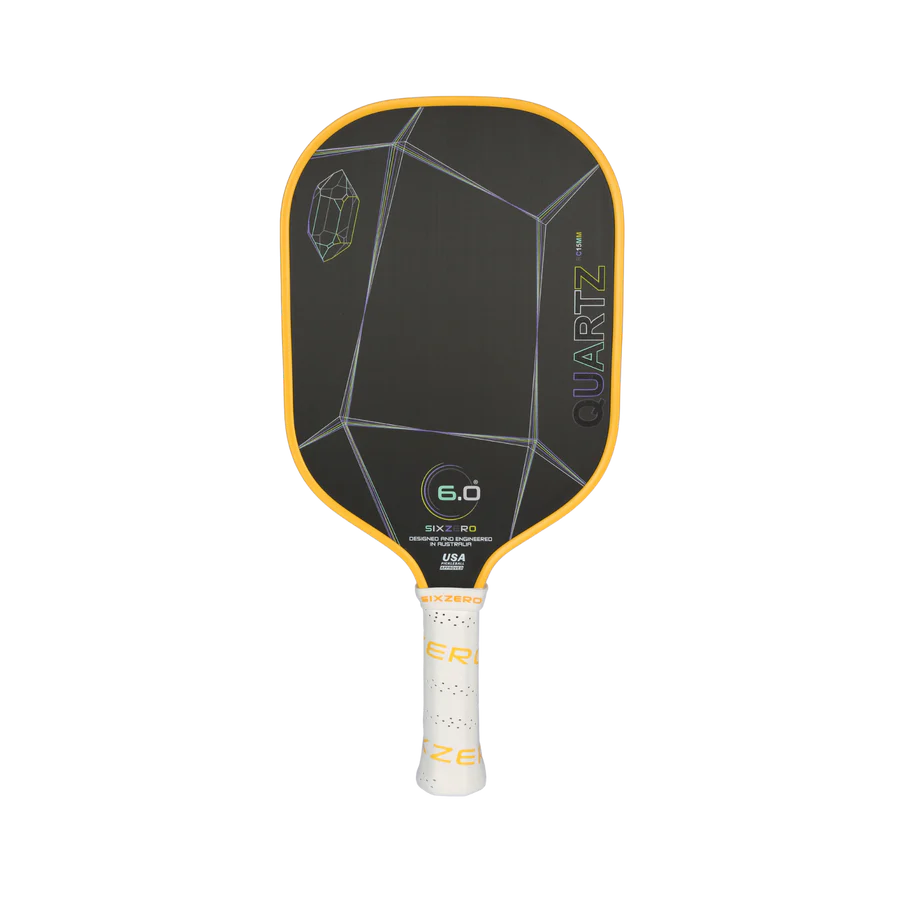 Introducing the Quartz Line of Pickleball Paddles from Six Zero Pickleball – the perfect blend of performance and affordability. Designed for players who demand quality and performance without breaking the bank, The paddle offers an accommodating all-purpose design that has a large sweet spot resulting in amplified control, generous power and pop. The Quartz has a single one-piece unibody construction that ensures durability and strength. The Quartz boasts an impressive twist weight of 6.4 guaranteeing enhanced stability and power on the court.